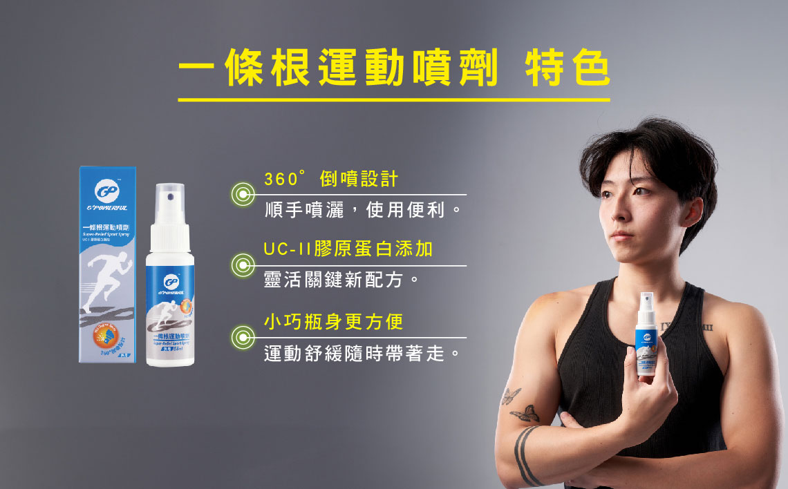 成份:金門闊葉大豆一條根、專利二型膠原蛋白、葡萄糖胺、廣藿香精油、抹草精油、冬綠樹精油、薄荷腦、純水、乙醇
