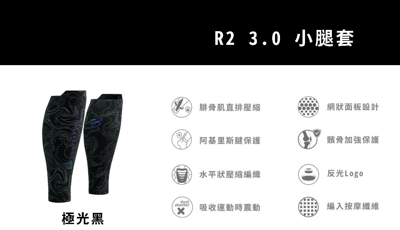 瑞士【Compressport】R2 3.0 小腿套 (極光黑)